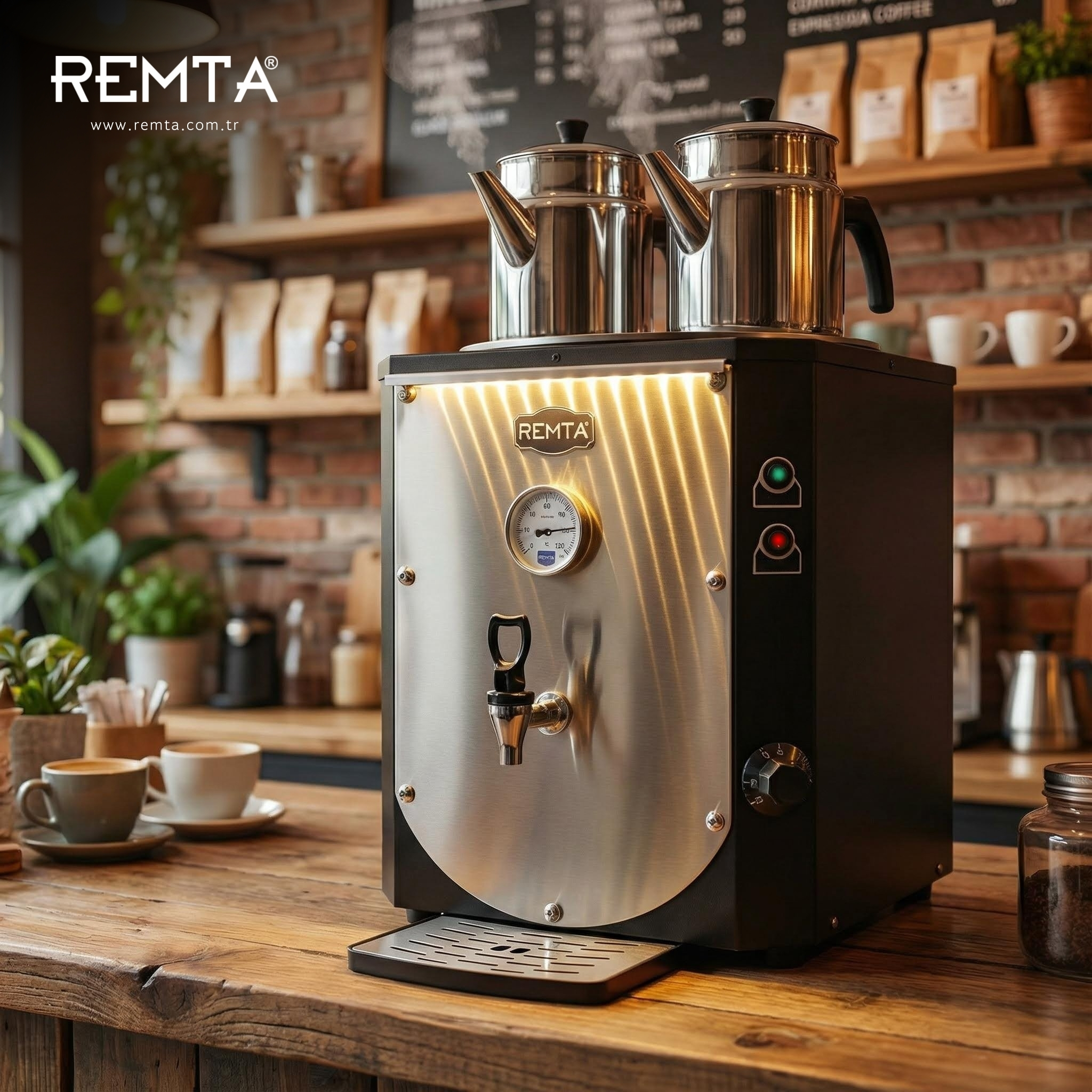 Remta 2 Demlikli 23 lt Master Jumbo Çay Makinesi Ledli Panel - DE11(M)